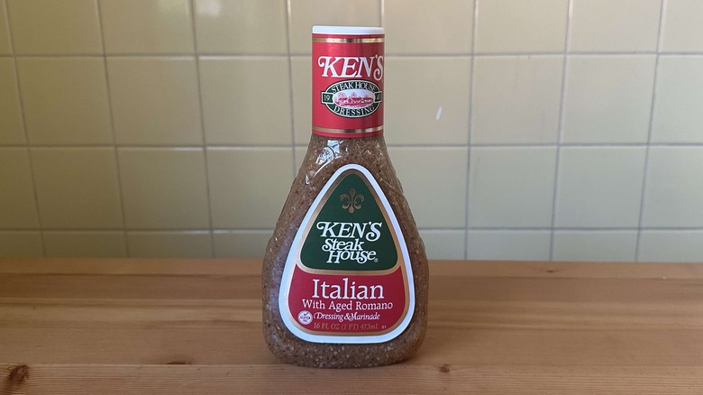 Ever tasted something at a restaurant and wished you could capture that exact same flavor at home? Well, when it comes to California Pizza Kitchen's Italian dressing, that's easy to do; you can find the bottled version at your local grocery store. Although this dressing is just labeled "Italian" like the others on this list, it's a bit different. First, you'll notice that this dressing is a lot more opaque than other varieties. And, you don't have to shake it up as much to get all those different ingredients to mesh well.