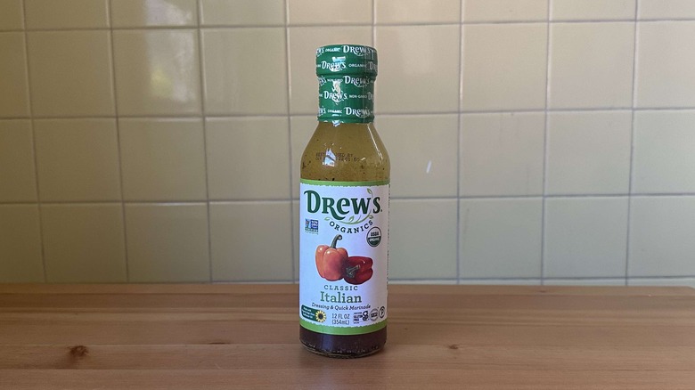 There's nothing better than a deeply acidic salad dressing. Many dressings you'll encounter out in the wild are all about the oil — and they don't pack enough of a zing. So to find a product that does really highlight that bright acidity feels like a treat. Unless, of course, that zing is as pronounced as it is with Drew's Organics classic Italian dressing and quick marinade. When I say that this salad dressing is acidic, I really, really mean it. The acidity is searing — so much so that it makes it difficult to taste much of anything else.