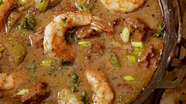 If you're making spicy Italian sausage, Hunter Shoults recommends a completely different tactic. "A hot [or] spicy Italian sausage would most likely be used as an additive to a main course, such as a soup [or] gumbo," he said. "So, slice into bite-size rounds and either cook in the soup (boil) or pan-sear first, then utilize the same pan with rendered fat to begin soup stock." If you're making gumbo in your slow cooker, you can simply add sausage slices right before you season everything and let it simmer. But if you're making it on the stove, just drop raw rounds in your pot about half an hour before the soup is done, or 10 minutes before for pre-cooked sausage.