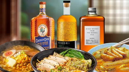 How do you find the perfect pairing? Adam O'Brien, owner of O'Brien and Brough, recommends looking at commonalities. "Toasty flavors come to mind as they're common in both malt whiskey and ramen," he notes. "In whiskey, they largely originate from the drying and toasting of the malted barley, but in ramen, they could come from roasting the broth ingredients, the noodle flours, or so many other ways throughout the cooking process."