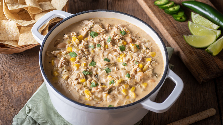 You can adapt our recipes for slow cooker white chicken chili or white turkey chili by adding a pour of buffalo sauce, paired with corresponding seasonings and aromatics. For example, both of our white chili recipes use more Mexican and Southwestern seasonings like cumin, chili powder, coriander, jalapeños, and diced green chili peppers. You could swap some of the spices for a Cajun seasoning mix and chop a more classic mirepoix base for the meat, broth, and white beans.