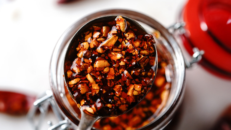 If you look up recipes for yukgaejang, they're translated into English as "spicy beef stew," and the ingredient responsible for this spicy designation is chili oil. And not just any chili oil will do. "I would not use a store-bought chili oil for this dish," Chef Ji Hye Kim advises, "As store-bought chili oils often include spices or other aromatics that are not always suitable for yukgaejang." Thus, you should save your Momofuku chili oil to drizzle over your favorite type of dumplings.