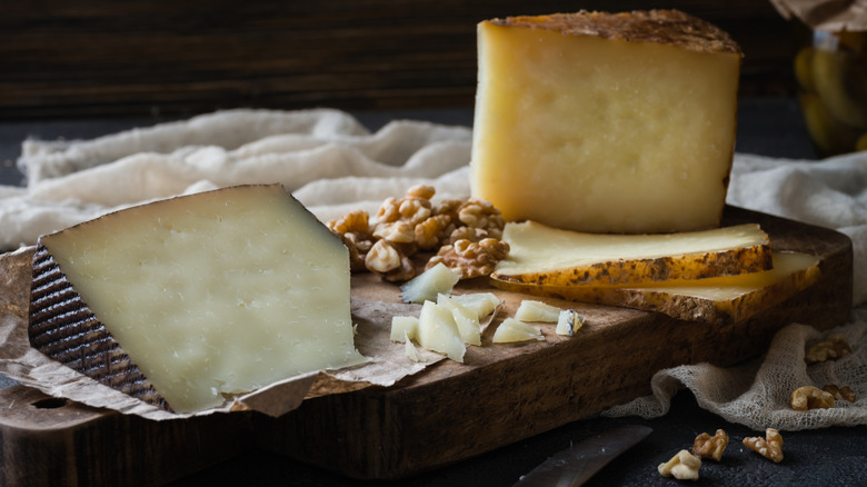 This storied cheese has been made in the central region of Spain since the Bronze Age — the same area associated with the fictional Don Quixote, the man of La Mancha. It can only be made with milk from Manchega sheep and is aged for at least 60 days, depending on the size of the cheese and the flavor profile the makers want to achieve. When mature, it is firm and buttery with a pale yellow color and a grassy scent. It's typically covered with a gray or tan zig-zag patterned rind that is not meant to be eaten.
