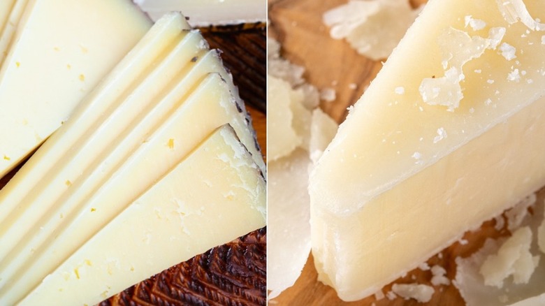 The difference in textures is another way to set these varieties apart. If you test them side-by-side, you'll see that Manchego, while still being a hard cheese, is softer and easier to cut into slices. It has a buttery smoothness that almost melts in your mouth.