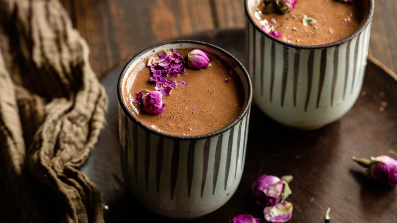 To get the lowdown on how to create the absolute best chocolate drinks, we turned to Preston Stewart, director of chocolate (an enviable title) for Onyx Coffee Lab, who is also a certified chocolatier with Ecole Chocolat and a certified cacao grader for the Fine Cacao and Chocolate Institute (FCCI). Stewart, who has worked in craft chocolate for over a decade, said to skip the mixes and chocolate flavored sauces (like Hershey's syrup), and go for the real thing: actual chocolate. "The fat from genuine chocolate can help thicken the beverage and with a vigorous whisk or milk frother, you can generate a nice froth," he told Tasting Table. For a decadent mug of hot chocolate, you'll want to melt your chocolate separately (which you can do in the microwave), then whisk it into heated milk after your pot comes off the stove.