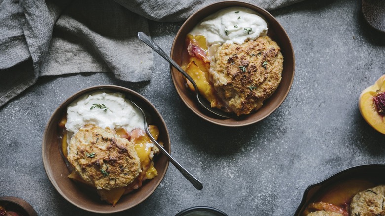 Sweet peaches combined with a lightly-spiced batter is the match made in heaven that gives us peach cobbler. It's a delectable way to use stone fruits, transforming them from a tart-like treat into a jammy dessert — and it's even better when washed down with a nice glass of wine. We spoke to an expert who has the best pick to make your peach cobbler sing.
