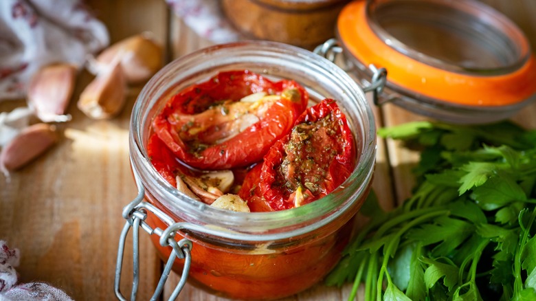 Originally discovered by the Italians, sun-dried tomatoes are now used across the Mediterranean to add an explosion of tomatoey goodness to salads, couscous, or pasta sauce. You can buy them in different forms, with sun-blushed being the least dried, and usually soaked in olive oil, while dry-packed tomatoes are shriveled and have virtually no moisture left. They can be easily hydrated by soaking in water for a few minutes if you want to return a bit of plumpness to them. Don't discard either the water or oil that your sun-dried tomatoes have been in — there will be plenty of flavor in it that you can add to sauces or stocks, or use as a substitute for your usual salad oil.