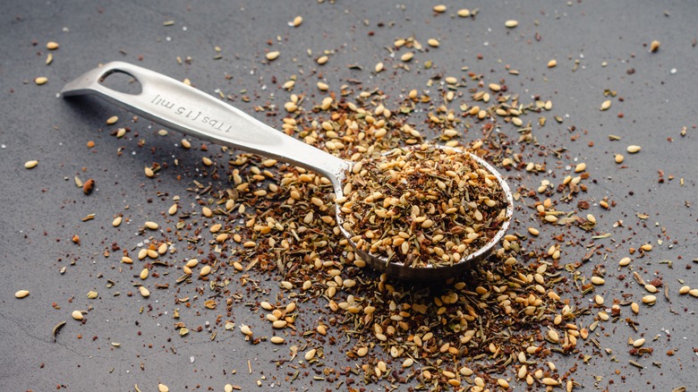 When shopping for a jar of za'atar, check the ingredients to ensure it is of high quality, without any fillers. While every blend will be slightly different, a bright green color throughout is a good sign that the herbs will still have plenty of flavor. You might want to buy an extra jar just in case — once you've started sprinkling this stuff, it's hard to stop!