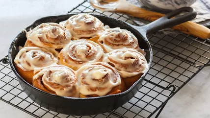 Before you throw your cinnamon rolls into the skillet, think about what it was previously used for. While we do want you to use your cast iron skillet more often, if the last thing you made was a reverse sear steak, we don't recommend making cinnamon rolls right away. While your rolls aren't doomed, if your skillet hasn't been properly seasoned, they might retain some of the steak's flavor. To avoid any risk of creating any unwanted combinations, buy one cast iron skillet for baking and one for cooking.