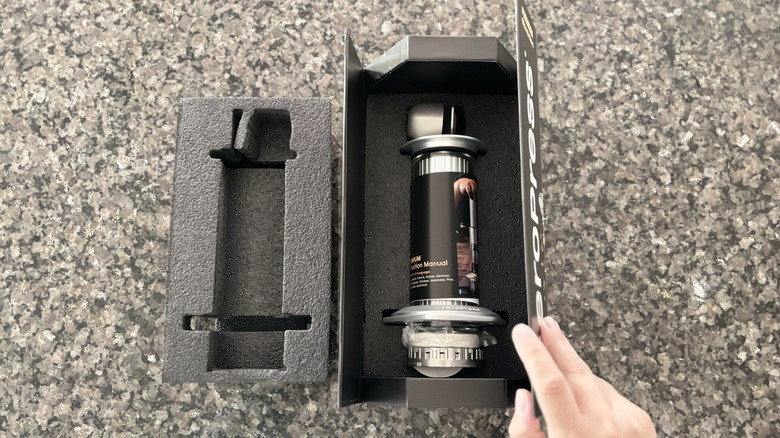 The box includes a stirrer and scoop that are both made of stainless steel. The new version also comes with paper micro-filters, the same ones used in the original model. All of the upgrades make for a fairly heavy handheld coffee machine. Weighing nearly 2 pounds, the premium model has a lot more heft than the 6.4 ounces in the original.