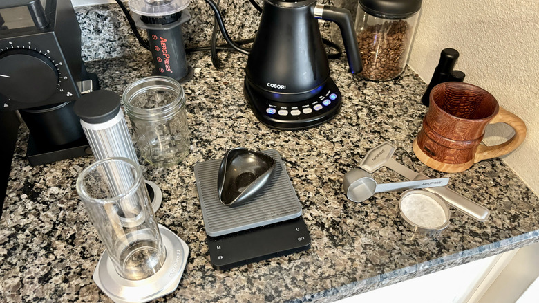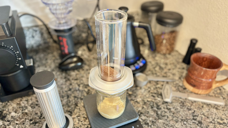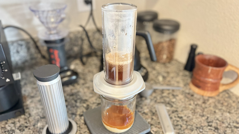 When I make my coffee in the morning, I use an inverted method with the AeroPress. That is, instead of the coffee dripping into my mug right away, it steeps together with the water in the chamber, and then I flip it over and press. It makes for a rich coffee flavor that I'm obsessed with. I wasn't expecting the inverted method to be much different with the AeroPress Premium, but it sure was. I should note that this isn't a method AeroPress endorses. The AeroPress website says officials "strongly discourage using the inverted method because it is less stable and therefore prone to tipping over and exposing the user to hot liquid." Spend a bit of time reading about AeroPress online, however, and you'll see it everywhere. But I digress.