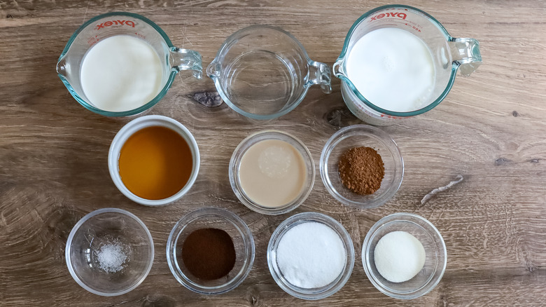 For this Boozy Irish coffee panna cotta recipe you will need cold water, powdered gelatin, half and half, granulated sugar, Irish whiskey, salt, espresso powder, heavy cream, and Irish cream liqueur. You can also sprinkle cocoa powder on top of these when they are done as a garnish, but it is not required. If you are looking to make this a non-boozy treat, Morone tells us that you can swap the Whiskey out for non-alcoholic whiskey or just use coffee. For the Irish cream you can use Irish cream syrup or Irish cream coffee creamer.