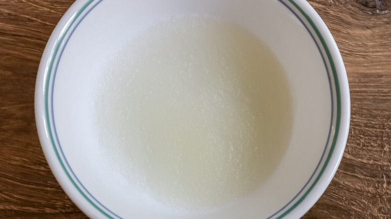 - Pour the cold water in a small bowl and sprinkle the powdered gelatin over it. Allow it to set for 5 minutes.