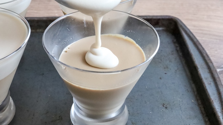 Spoon the Irish cream mixture over the set coffee layer to almost the top of your glasses or ramekins. Refrigerate for at least another 3 hours, until completely set.