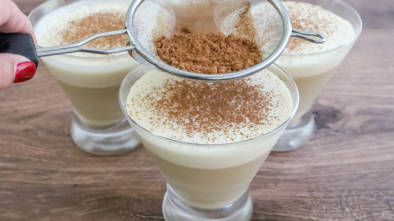 Dust cocoa powder over the set panna cotta if desired, then serve cold.