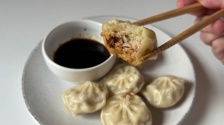 On the plus side, the company does include sauce packets with the dumplings, though it just tasted like a salty soy sauce and wasn't anything notable. One bite out of the first dumpling sent juice splattering across my table, which I actually took as a good sign, as I love a juicy dumpling. While I wouldn't call these dumplings bad, they had nothing to write home about. I thought their flavor was pretty lackluster, and there was virtually no texture variation. To their credit, though, they were amply juicy. Personally, I don't think the recommended microwave preparation is enough to do these dumplings justice, so next time, I'll pan-fry them slightly after microwaving just to give them some texture. I also don't think they can hold their own as an appetizer, and I would be more tempted to eat them in soup or even as an accompaniment to some fried rice.