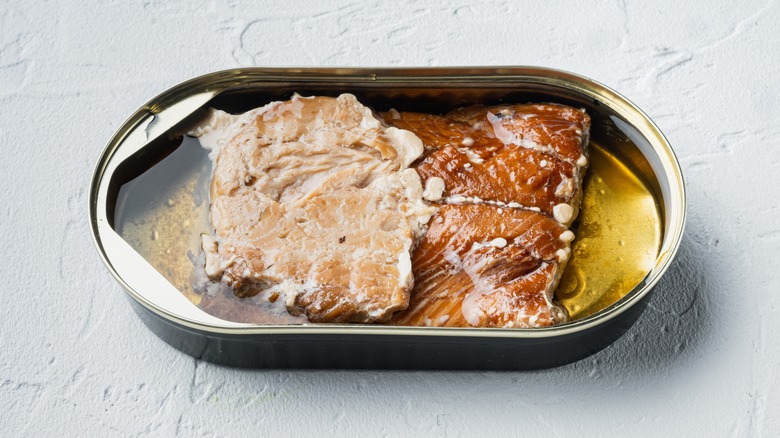Chicken Alfredo is classic comfort food for a reason. Between the juicy poultry and cheesy sauce, it's a rich, creamy, and cozy dish. But let's face it — as satisfying as it might be to dig into a bowl of chicken Alfredo, it's not exactly the most flavorful meal around. So if you want to make the taste of your pasta pop without completely altering its flavor, try adding some canned smoked salmon or crab.