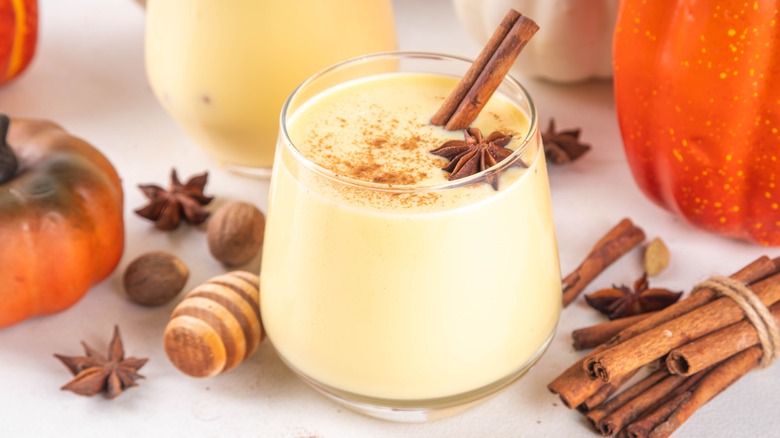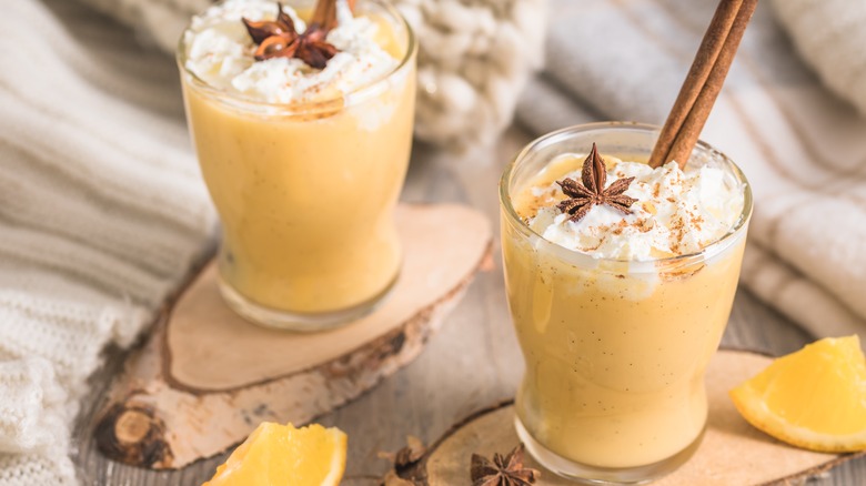Nothing says "hey, welcome to the holiday season!" quite like a cold and creamy glass of eggnog, which is why Craig Escalante of Laurel Bakery opts for it every time. Made with eggs, milk, heavy cream, sugar, and a pinch of ground nutmeg, Escalante likes his classic eggnog spiked, which in the traditional sense means he's opting for a generous pour of rum in there. To really spice things up, we recommend adding in some vanilla vodka and a splash of amaretto liqueur to really feel the holiday spirit.