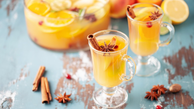 While chef Marcus Samuelsson almost always opts for bourbon with a big ole ice cube any time of year, during the holidays he reaches back into his Swedish roots and reaches for a warm glass of glögg. According to Samuelsson, it's essentially the antithesis of what you're supposed to be doing with red wine, except the result is absolutely ideal for the holiday season. Sugar, citrus, cardamom, cloves, and warm baking spices are added to red wine, and then everything is heated up. For him, it's not the holidays without a cup of glögg, and we couldn't agree more.