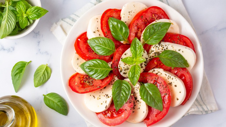 As the name suggests, this salad possibly originated on the island of Capri, just off the coast south of Naples. It seems like Neapolitans were really into the whole Italian flag thing, because aside from pizza, they also invented this dish that also mimics the colors of the Italian flag: tomatoes for the red, mozzarella for the white, and basil leaves for the green. Or perhaps it's the other way around, and the Italian flag was subconsciously designed to imitate the best food combinations of the land?