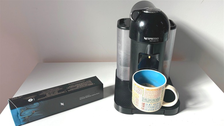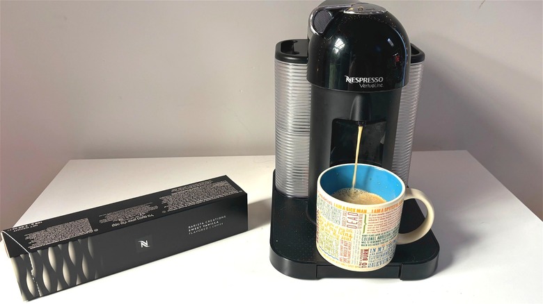 It's a good bet that any coffee superfan who's always making at-home brews has a Nespresso machine ready to go at a moment's notice. Maybe your favorite latte is a sweet selection from Starbucks, but that's not a daily possibility — after all, buying a latte every day adds up! Instead, you turn to your trusty Nespresso for your daily sweet caffeine fix. There's only one problem: You have yet to find a pod that's suitable to your sweet coffee cravings, and no Nespresso pod you try is enough to satiate.