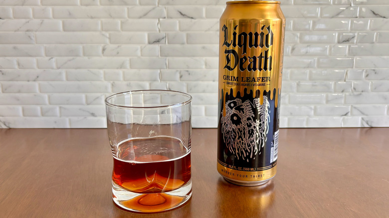 Liquid Death is perhaps best known for its water flavors, but the trendy brand also offers a variety of teas. One such tea option is the Grim Leafer sweet tea, which comes in the distinct 19.2-ounce tallboy can that has become such a staple look for Liquid Death. While there's no denying the visual appeal of Liquid Death's products and the popularity of the brand in general, there is plenty of denying the quality of this sweet tea, which left me struggling to take more than a couple of sips.