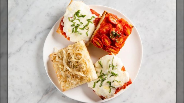 The pizza at Agata & Valentina comes in a few different styles, and you can order it by the slice. The main type of pizza that it offers is focaccia, and the flavors vary by the day. There's almost always a plain Margherita focaccia available, along with other options, like rosemary, onion, or on the rare occasion, a barbecue chicken. There's also a miniature, personal pizza that's offered (aka pizzettes), which usually features Margherita or pepperoni options.