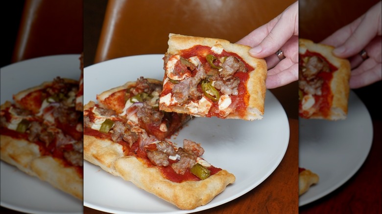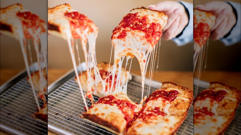 Now, as for the actual taste of the pizza, it's absolutely delicious. I love how incredibly crispy and thick the crust is. It's served in squares, so it's more of a Sicilian-style slice. The sauce and cheese are incredibly fresh tasting, and the pizza isn't covered in grease. I always opt for a Modern Bread & Bagel slice of pizza when I want something that doesn't feel incredibly heavy on the gut but is tasty and satisfying.