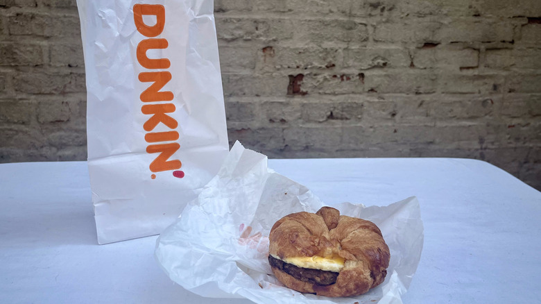 Breakfast sandwiches are a convenient quick meal on any busy morning when the main objective of the first two hours of the day is to get to work on time without an empty stomach. They're easy to eat on the go and are especially a lifesaver when you haven't had time to make something yourself. Tasting Table's Neala Broderick had the fun task of trying 11 fast food breakfast sandwiches and ranking them best to worst. The winning spot went to the Dunkin' Sausage, Egg & Cheese Croissant — this sandwich hits all the flavorful notes you want in a good breakfast and is totally worth the extra stop on your morning commute.