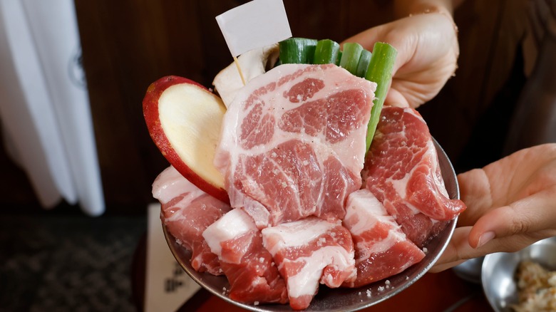 Pork belly is fattier, milder in flavor, and cooks faster than the sweetly marinated galbi. It's an indulgent protein that eliminates the need to order more extravagant proteins like Wagyu or beef tongue. The meat can be further elevated with a generous dunk of sesame oil and a sprinkle of salt. Han Hwang agrees. "I love the simplicity of the combination of sesame oil, salt, and pepper." In symphony with sesame oil, the uncluttered bites of pure fat and salt elevate a Korean barbecue night to great heights. Just don't forget to pull your pork off the grill after it starts shrinking. Otherwise, the fatty meat will seize up and lose its flavor and texture.