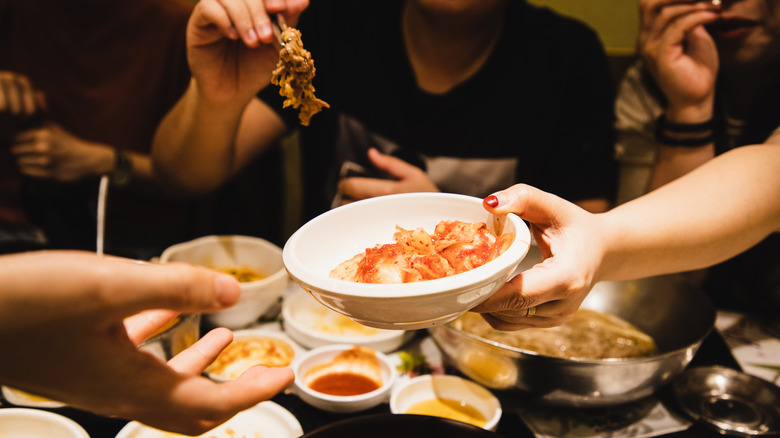 When you are ordering for extra mouths, you can order more meats and combinations. For example, you can stick to ordering the standard items on the tabletop grill — like pork and beef — and tackle some more creative options like Korean mackerel and shrimp. These supporting proteins can really elevate your dining experience and offer surf and turf opportunities you may not otherwise get if you're only eating for two. Plus, so many of the ancillary dishes, like pajeon (a variety of savory pancake), mandu, and ddukbokki, are available to order and can be split across multiple people. This can really make sending out those extra invites worth it.