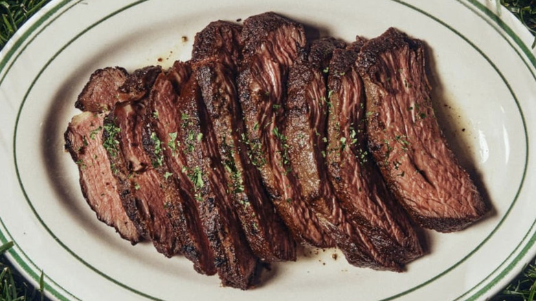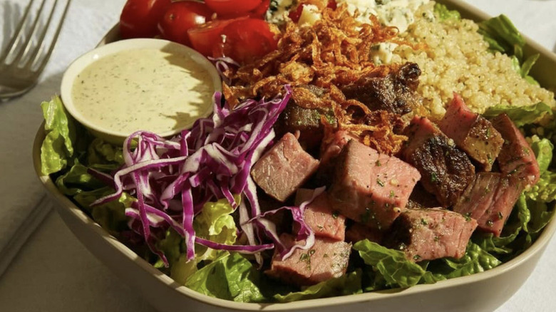 Carnivorous eaters can rejoice, Sweetgreen's initial trial putting steak on its menus has now expanded beyond the original two dozen locations throughout Massachusetts to appease even more customers. Now, Sweetgreen visitors have the option of adding caramelized garlic steak to their protein plates, bowls, and salads. The pieces of tender, juicy steaks are made from grass-fed and pasture-raised tri-tip sirloin cooked with slow-roasted and caramelized garlic and onions. The chef responsible for the in-house recipe is Sweetgreen's head of culinary and a Michelin-trained chef who has also spent time in the corporate kitchens of Chipotle and Burger King.