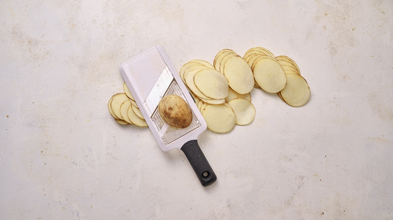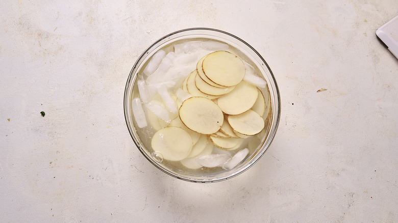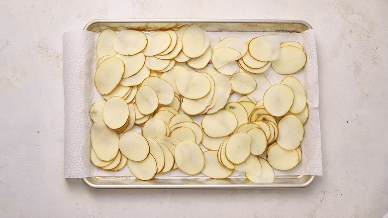 - Drain and thoroughly dry the potato slices using paper towels, then store them in the refrigerator to chill.