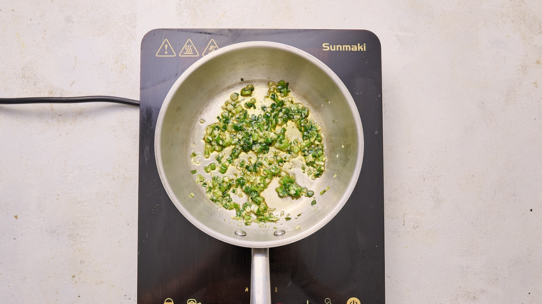 - Add the scallions and garlic and cook until softened, about 2 minutes.