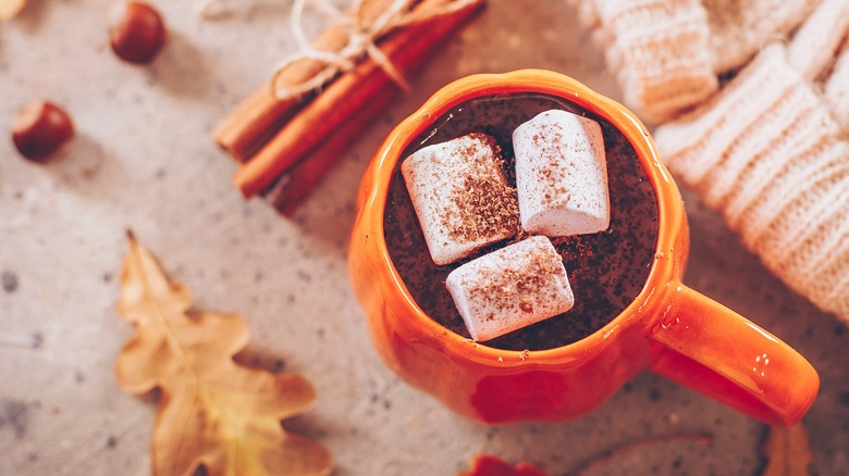 Chocolate does not find itself in many fall-inspired recipes, as pumpkin spice, apple, vanilla, and maple usually run the season. However, that doesn't mean it can't integrate with these classic flavors. Since Starbucks popularized its pumpkin spice latte, adding the blend to coffee has been a seasonal staple. But you might get FOMO for this comforting drink if you don't like coffee or are cutting back on caffeine. The solution is to add pumpkin pie spice to your hot chocolate for a warm and rich treat.