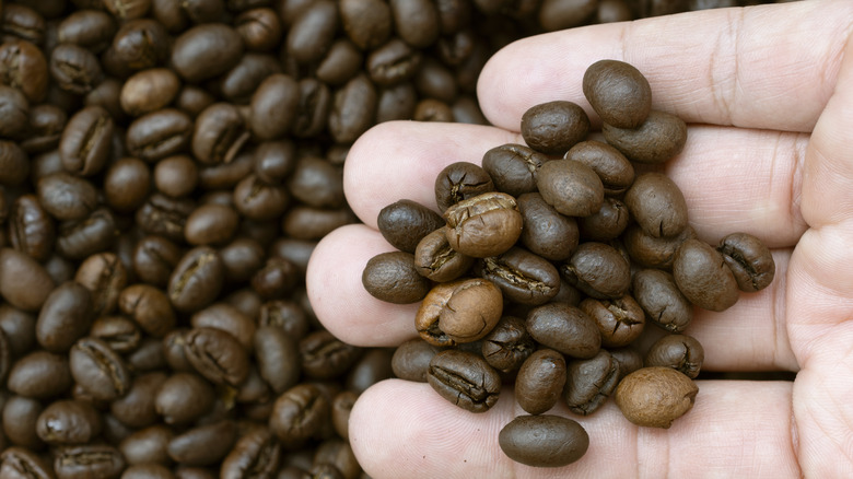 The final difference between these beans is that arabica is more expensive than robusta. While arabica is the choice for roasters and specialty coffee aficionados, it's not necessarily that arabica beans are inherently "better," as the higher price point might suggest. The robusta plant's hardiness means it's significantly easier to grow and produce en masse than arabica plants, which require specific growing conditions and more hands-on care to cultivate. Also, because arabica beans grow at such high elevations, their terrain is often mountainous or otherwise difficult to access, frequently requiring the beans be harvested by hand. Robusta beans, conversely, are easier to reach and can commonly be harvested by machine. Although, perhaps surprisingly, robusta beans only account for an estimated 30-40% of all coffee consumed worldwide.