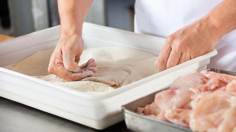 There's nothing like taking your first bite of crispy fried chicken and hearing that audible crunch as your teeth come into contact with its seasoned crackly coating. And while this coating lends chicken a golden, craggy surface full of flavor, it also serves another function — preventing the protein from drying out as it deep fries. According to chef Ludo Lefebvre, prepping the best coating for fried chicken doesn't need to be a complicated affair that requires heaps of different flours, breadcrumbs, or eggs. In fact, as he told Food & Wine magazine, all you need is a simple dredge in a single ingredient — cornstarch.