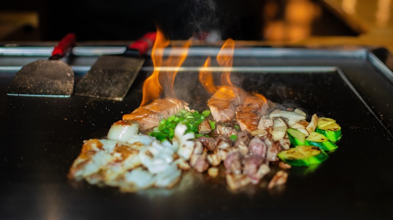 Succulent and fragrant, a Hibachi steak prepared by a showman chef is phenomenally delicious. And while it's the high heat of the flat top griddle that lends this Teppanyaki favorite its characteristic savory sear, there's another key ingredient that turns it into an aromatic umami powerhouse: Compound butter made with heaps of garlic and seasonings like hondashi and chicken powder.