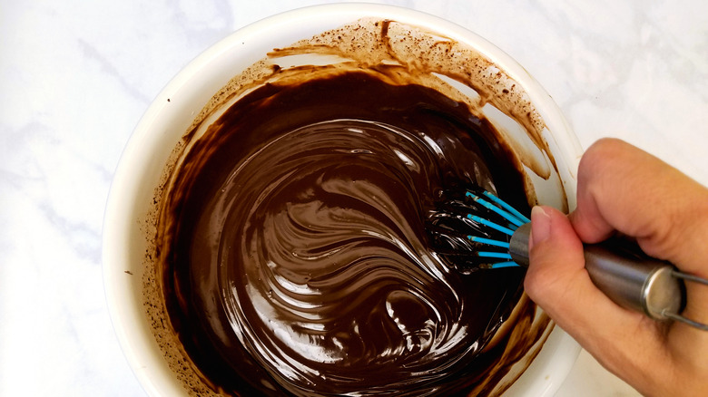 If you don't know where to start, take a look at our chocolate-covered pretzel ice cream cake recipe. The ganache itself is relatively simple to make at home; you'll just need to combine the heavy cream with the chocolate chips and melt everything down until it's smooth and creamy. Elevate the ganache by letting the ganache sit so that the flavors can bloom before you drizzle it onto your cake. Or, consider adding warming spices, like cinnamon and cloves, or a little bit of alcohol to alter its flavor and better complement your cake flavors.