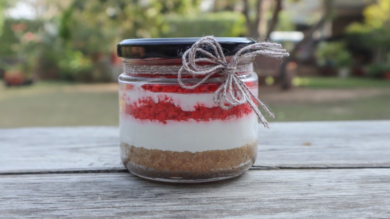 You can also try adding strawberry sauce to a white or yellow cake-based dessert. The trick is that you'll want to select a sauce that stays relatively soft and in a liquid state when it's in the freezer. Sauces containing strawberry juice or wet ingredients may cause issues with ice crystals and impact the flavor of your dessert altogether.