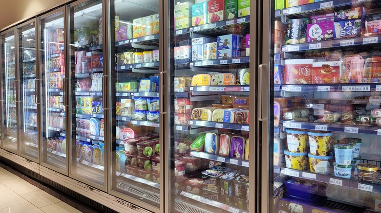 Ice cream cake can admittedly be quite heavy and dense. If you're looking for a lighter dessert option, you may want to turn to ice cream lasagna instead. Instead of making your own cake for this recipe, this one repurposes the box of ice cream sandwiches that you may already have in your freezer. Start by unwrapping each sandwich and layering it inside of a baking pan. Then, pour in your sauce of choice, like fudge or caramel, before finishing off the top with another layer of cookies. You could also up the ante by adding a layer of whipped topping to the outside of the cake before popping the whole thing back in the freezer to set.