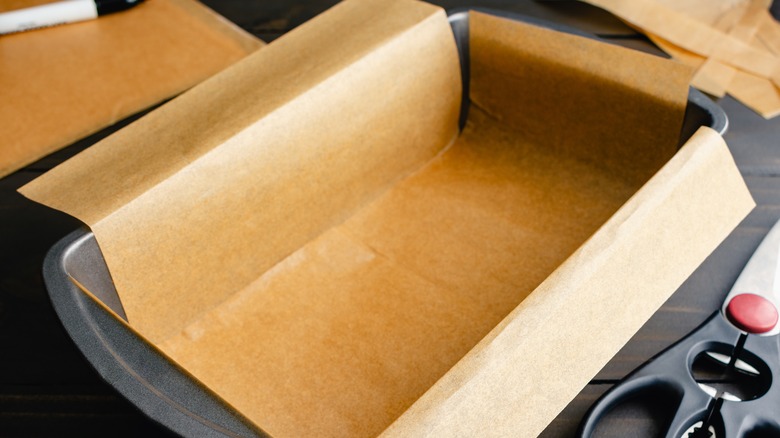 The dish that you assemble your ice cream cake in will often depend on the shape you're after. Round and square ice cream cakes are the status quo, but for the best ice cream cake ever, you'll want to ditch them for a loaf pan instead. That way, you can layer the inside of the pan with plastic wrap before putting your cake layers and ice cream inside of it.