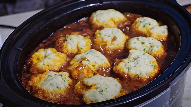 This next dish is certainly one that fits into the comfort food category. Beef stew with dumplings is the kind of meal that's made for chilly weather, with tender pieces of beef simmered slowly alongside root vegetables in a savory flavor-packed broth. Braising or stewing beef are the cuts typically used here, as they become wonderfully tender and juicy when cooked low and slow.