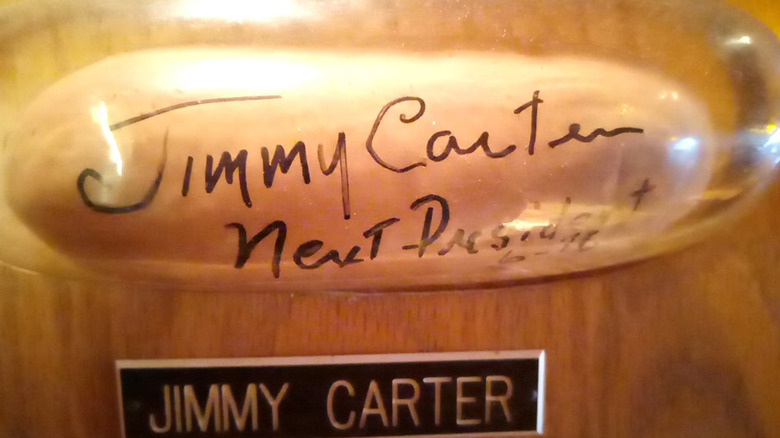 The draw is still the dogs though, and today the restaurant has five locations throughout the Toledo area. While Jimmy Carter may have been one the first politicians to sign a bun at the original location, others followed, including Walter Mondale, Gerald Ford, George W. Bush, Bill Clinton, and Barack Obama. Today, luminaries pick up a pen, and maybe a pierogi, to sign the foam-and-rubber buns. But for the O.G. celebrity patrons like Reynolds, repeat visits to Packo's have included volunteering to re-sign the faux buns for preservation purposes. One of the only real hot dog buns that still exists — framed and hanging in the original Tony Packo's — is Jimmy Carter's, and it's enjoying the same longevity as the former president himself.