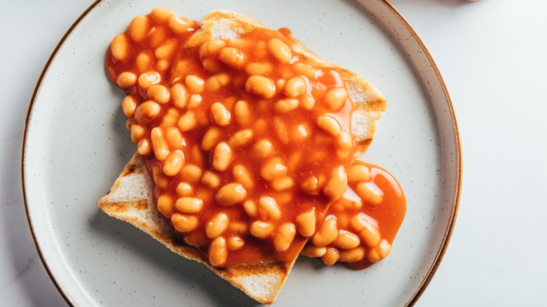 Canned beans and pre-sliced bread along with butter comprise the original recipe, which requires no real cooking. Easy assembly and affordability are still a large part of its appeal, especially with college students. Still, older generations hold a special place for beans on toast in their hearts and appetites, whether it harkens back to their own college days or wartime scarcity. Like Gordon Ramsay, many Brits take advantage of the dish's versatility by adding spices, herbs, cheese, and even sauces. Worcestershire sauce, rosemary, and grated cheddar cheese are common upgrades. You could also make your own baked beans, using this decidedly American recipe for slow-cooker baked beans with bacon and barbecue sauce instead of the more British tomato-sauce foundation.
