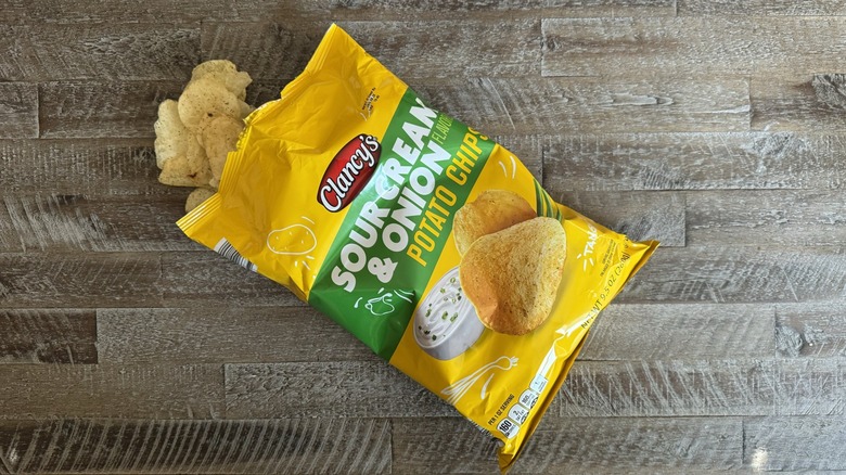 I'm an Aldi girl through and through. So it's no surprise that Clancy's, the grocer's private label brand, would make its way onto this list. Its sour cream and onion chips are packaged in a rather inconspicuous plastic yellow bag. There are no frills here, and the price for the quantity of chips you get is rather impressive.