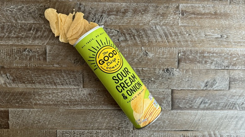 These chips tout a label that says, "All taste, no guilt." But I have to ask, then, where exactly is the taste? I don't detect anything salty, tangy, or herbaceous from these saddle-shaped potato chips. I actually don't get any flavor from these chips at all, even if they are speckled with tiny pieces of onion. Most of the chips arrived broken and crumbled inside the can, which defeats the entire purpose of buying a saddle-shaped chip in the first place.