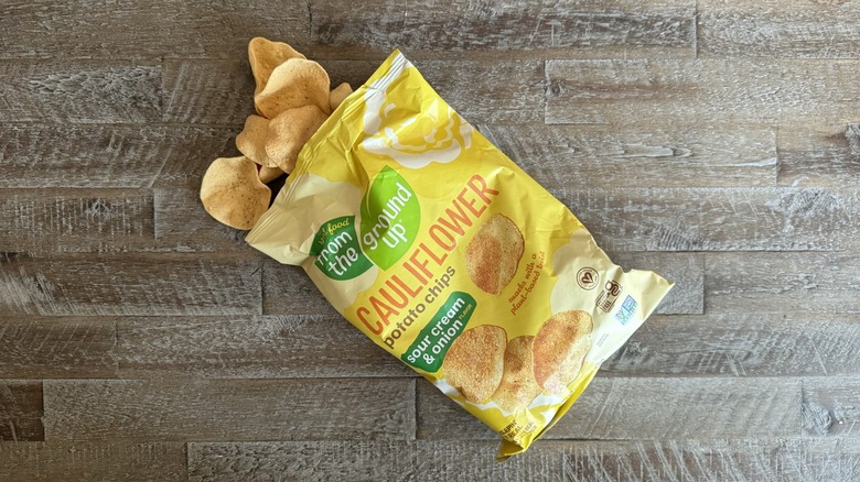 You might wonder why I would include a black sheep — From the Ground Up cauliflower chips — in my taste test. Well, this brand deserves a little credit; it makes its chips with a blend of potato (the primary ingredient), cauliflower, carrot, beet, spinach, and other veggie flours — and it's entirely gluten-free and vegan. That's not something you can say about the other brands on this list.