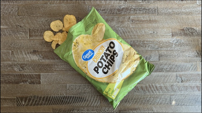 Great Value's sour cream and onion chips were by far the cheapest of all the brands I sampled, but sometimes, price is directly correlated with product quality. I can't say that this is entirely true with this brand, though, as its chips are not all that bad — at least at first.