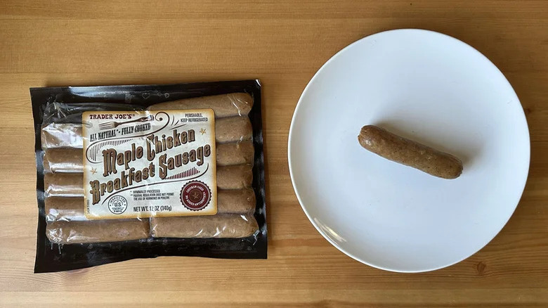 Trader Joe's is known for having inventive and addicting snacks, along with horrendous parking lots. Occasionally, those snacks don't hold up against each other. We taste-tested 11 of Trader Joe's sausages and found that one was lagging when compared against the others. According to our research, Trader Joe's Maple Chicken Breakfast Sausage was overtly sweet and didn't have the best texture either.